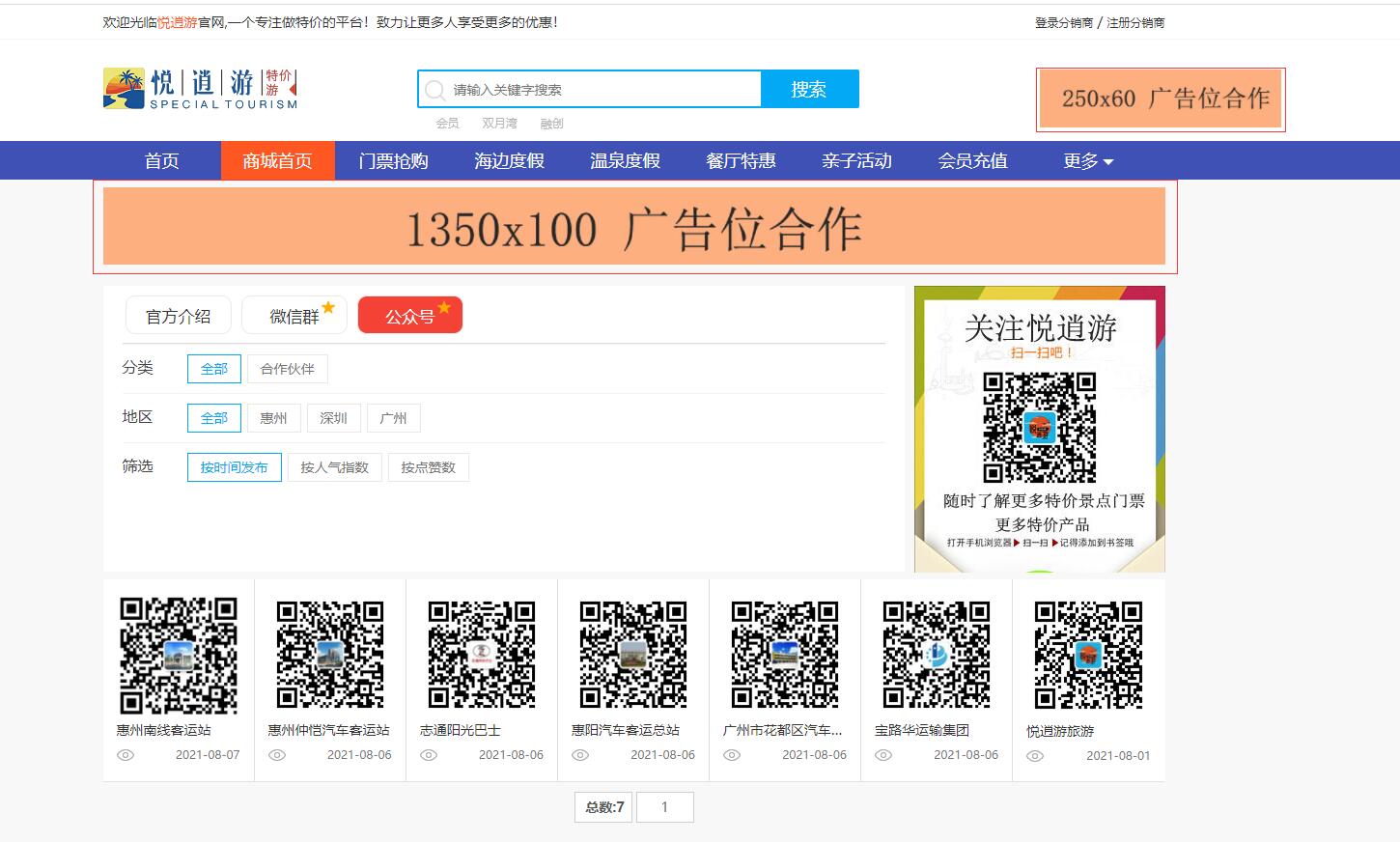 同时获得3个月的网站广告位 顶部250*60 半年的权限。公众号二维码上架1年