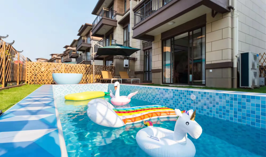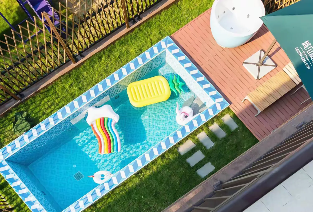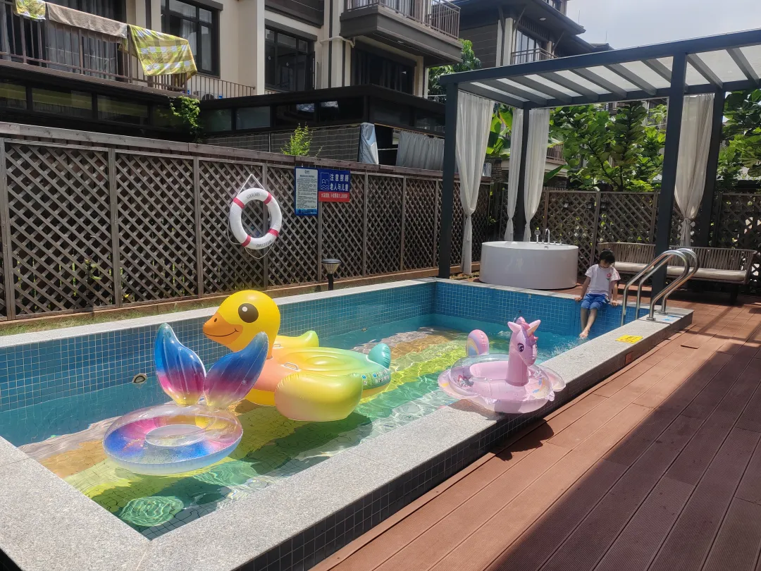 15,、泳池户型,因泳池较大,池水会每天进行过滤消毒,非一客一换,介意者慎拍,