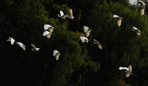 清晨时分,成群白鹭结伴觅食;黄昏时分,鹭鸟伴着落日晚霞归巢休憩;天鹭山下,耳畔聆听微风与鸟鸣。