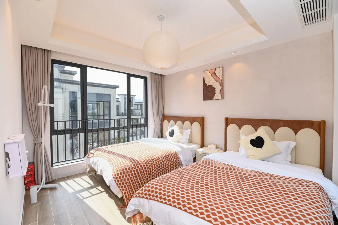 5、床型介绍:1.8米 + 1.5米+2张1.2米;每栋别墅装修与床型略有不同,以实际安排为准