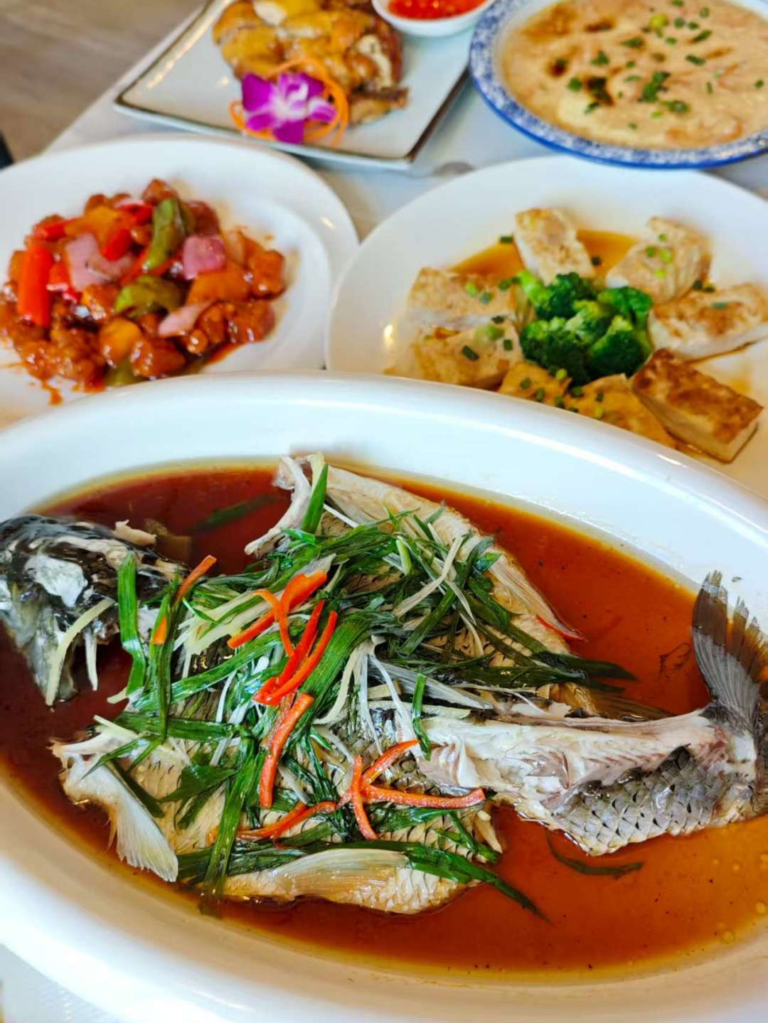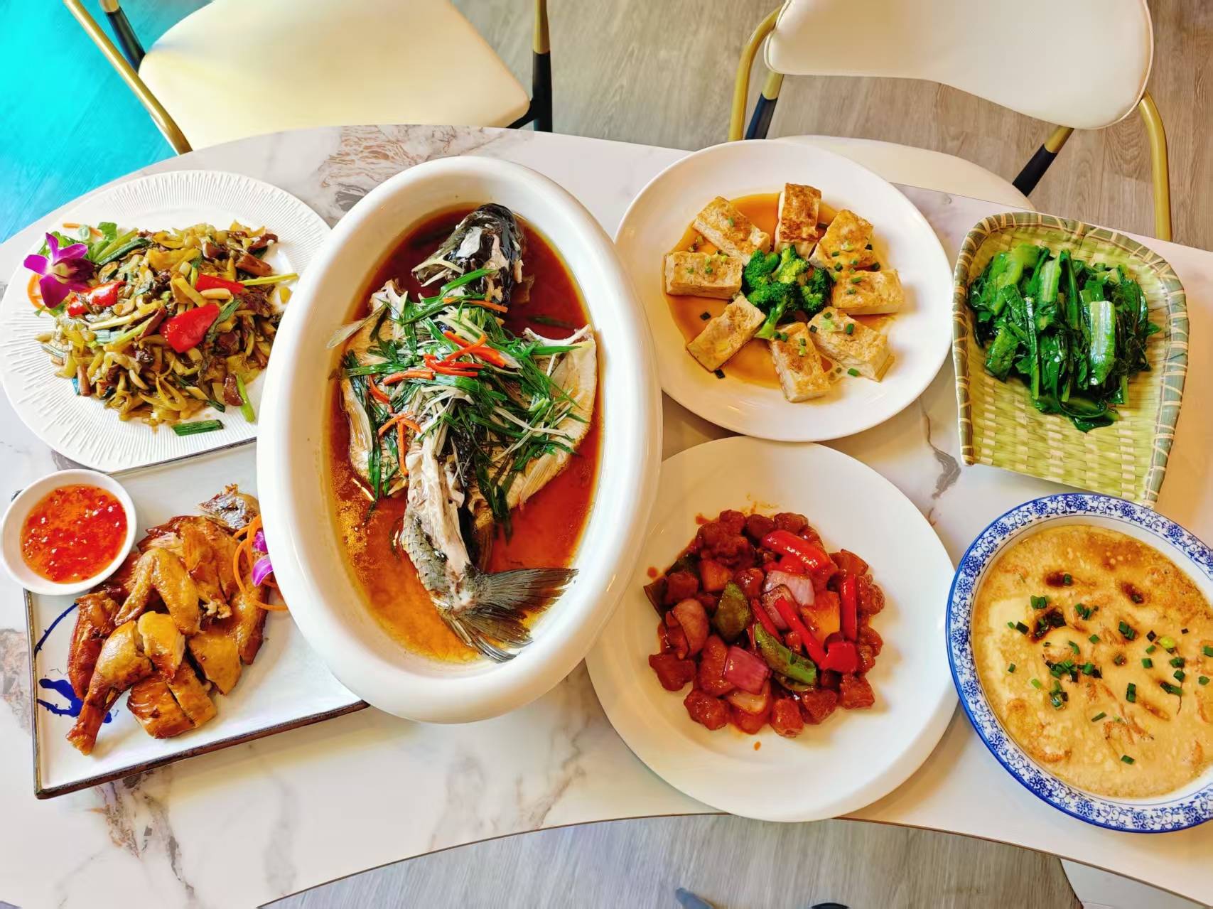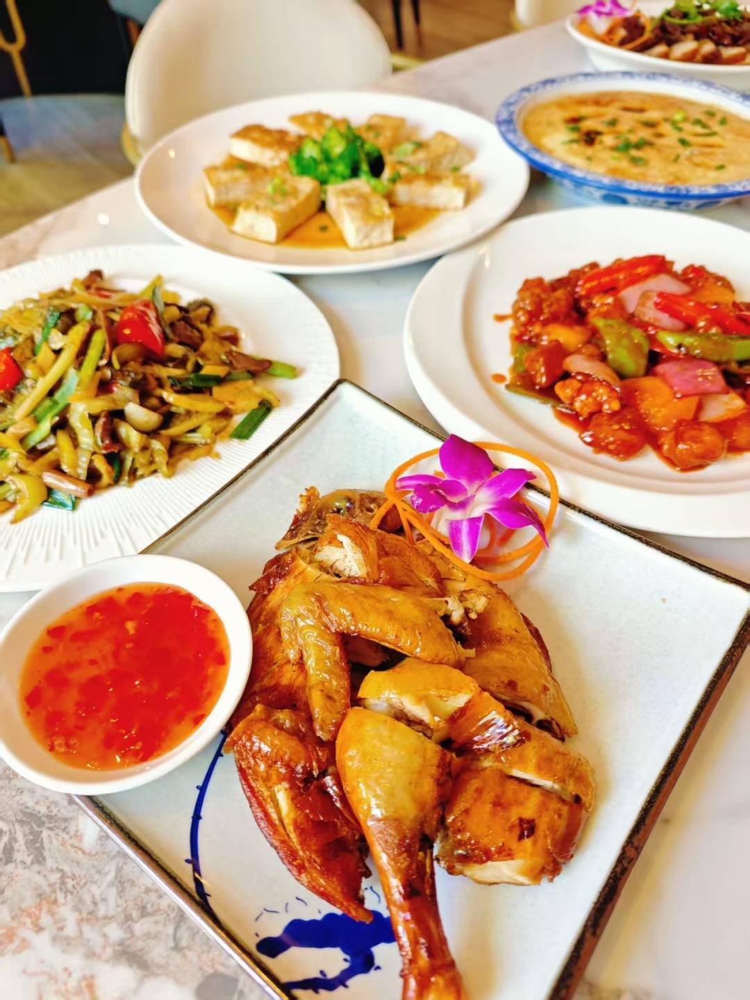 10、双人美食套餐:清蒸瘦身鲩鱼,酸甜咕噜肉,半只烧鸡三选一;吕田豆腐,蒸水蛋,酸菜炒鹅杂三选一,时蔬,2碗米饭,2人茶位