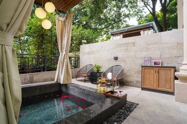 本次推荐的是酒店庭院泡池双泡池房