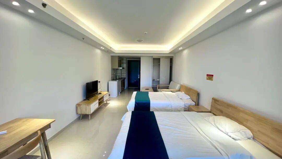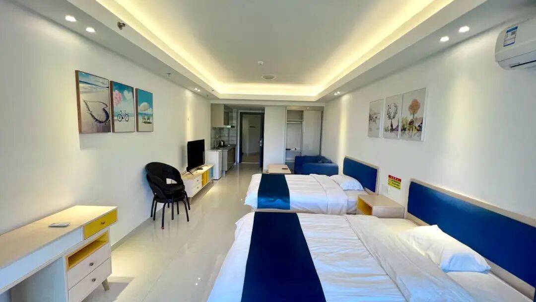 2、房型介绍:1.2米或1.5米双床房,带景观阳台,1栋、2栋随机安排,为一线侧海景房,房间配有一次性洗漱用品,楼层安排在10楼以上,到沙滩步行约3分钟