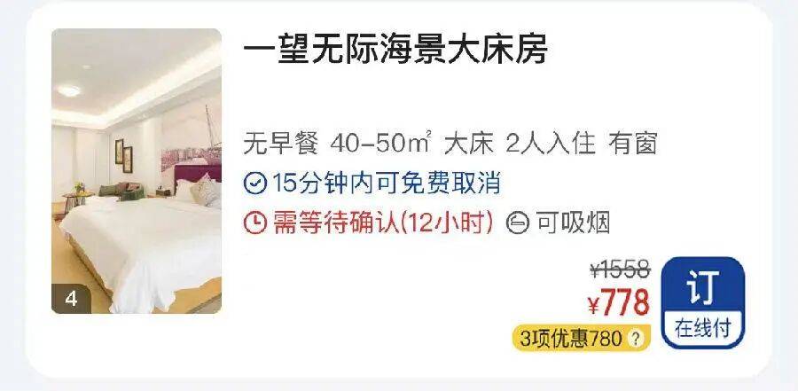 5、酒店房型各不相同不能指定房型以酒店安排为准,楼层风格,观海视野随机安排,不接受指定