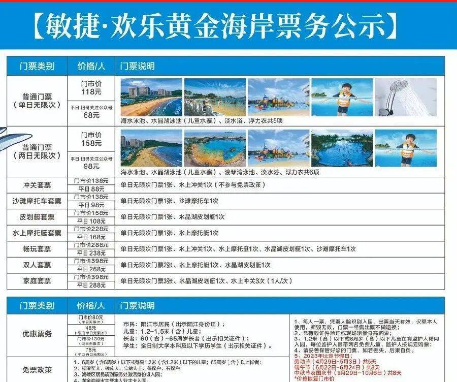 增订敏捷·欢乐黄金海岸游玩项目收费标准(玩水设备预估5月开放):