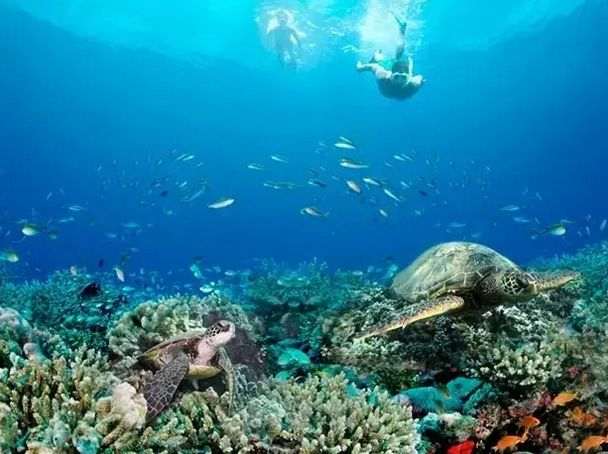 岛周海域平坦,丰富的珊瑚礁、热带鱼类